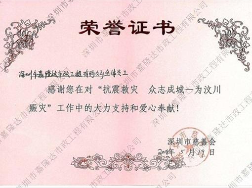抗震救災榮譽證書